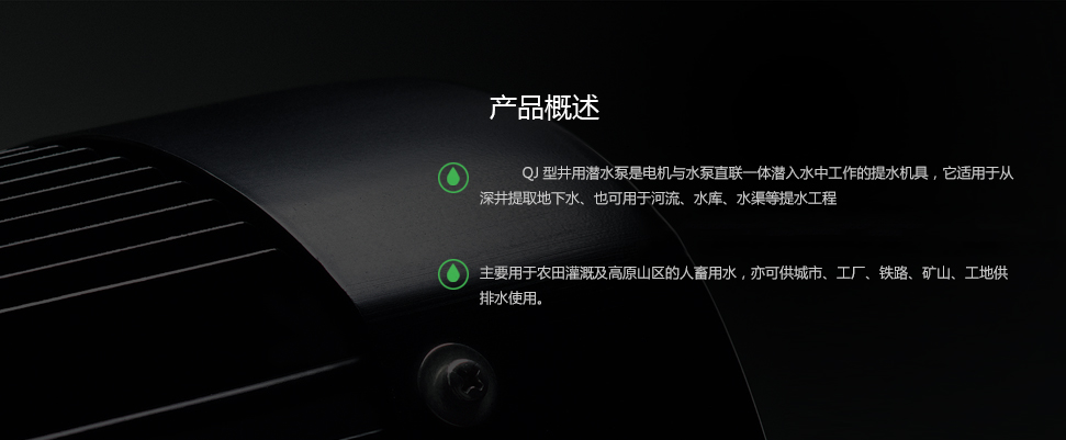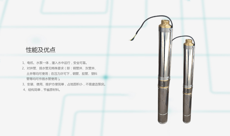 QJ深井潛水泵是電機與水泵直聯一體潛入水中工作的提水機具,它適用于從深井提取地下水、也可用于河流、水庫、水渠等提水工程;主要用于農田灌溉及高原山區的人畜用水,亦可供城市、工廠、鐵路、礦山、工地供排水使用