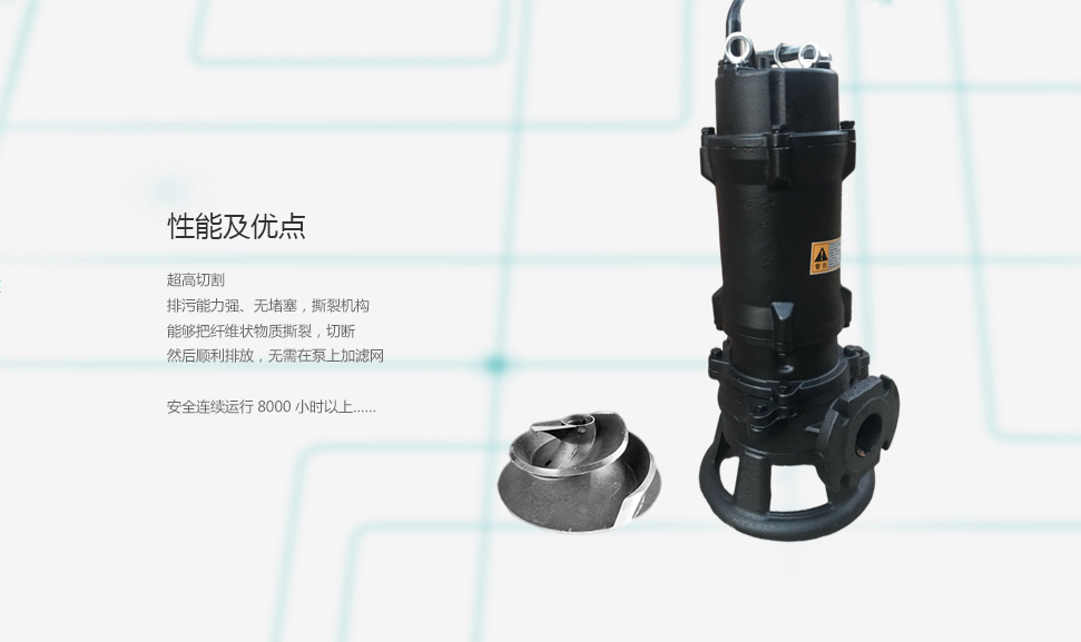 QWD帶切割潛水泵適用于工廠商業(yè)嚴(yán)重污染廢水的排放、住宅區(qū)的污水排污站、城市污水處理廠排水系統(tǒng)、人防系統(tǒng)排水站、自來(lái)水廠的結(jié)水裝置,醫(yī)院、賓館的污水排放、市政工程建筑工地、勘探、礦山配套附機(jī)、農(nóng)村沼氣池、農(nóng)田灌溉等行業(yè),輸送帶顆粒的污水、污物,也可用于清水及帶腐蝕性介質(zhì)。