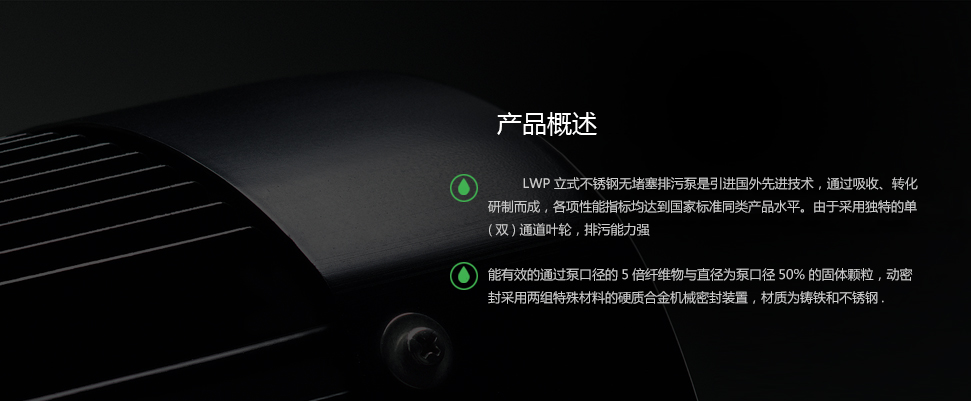 LWP耐腐蝕不銹鋼立式排污泵適用用于工廠商業嚴重污染廢水的排放、主宅區的污水排污站、城市污水處理廠派水系統、人防系統排水站、自來水廠的給水設備、醫院、賓館的污水排放、市政工程建筑工地、礦山配套附機、農村沼氣池、農田灌溉等行業,輸送帶顆粒的污水,污物,也可用于清水及帶弱腐蝕性介質。